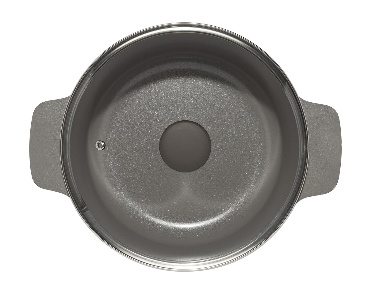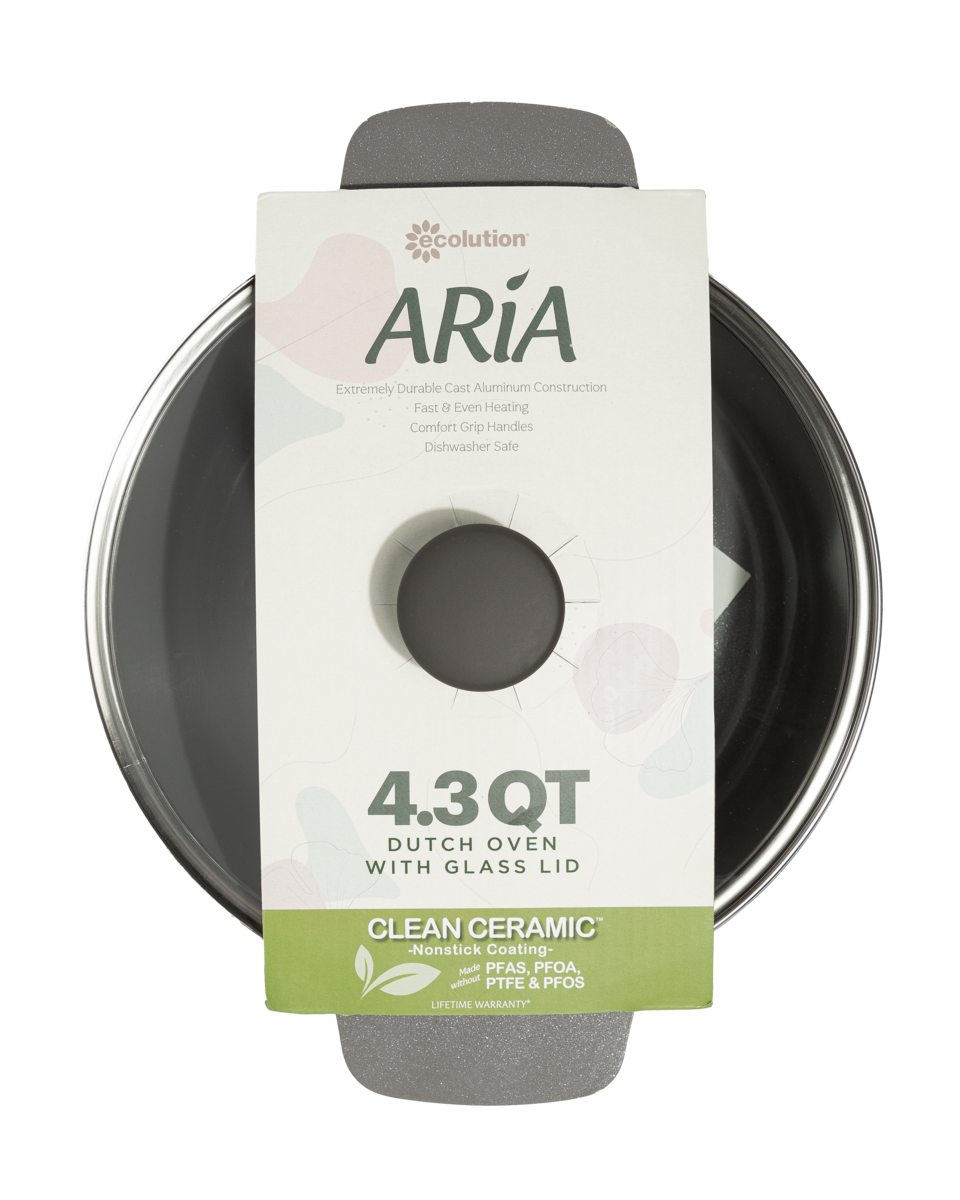 The Ecolution Aria Dutch Oven brings timeless style and exceptional performance to every kitchen. Available in elegant Cream or sleek Charcoal, this versatile Dutch oven is crafted from durable cast aluminum for fast, even heating—perfect for simmering soups, stews, pasta, or baking artisan bread. Its Clean Ceramic™ nonstick coating is made without PFAS, PFOA, PTFE, or PFOS, offering a safer, water-based surface for healthy, eco-conscious cooking.