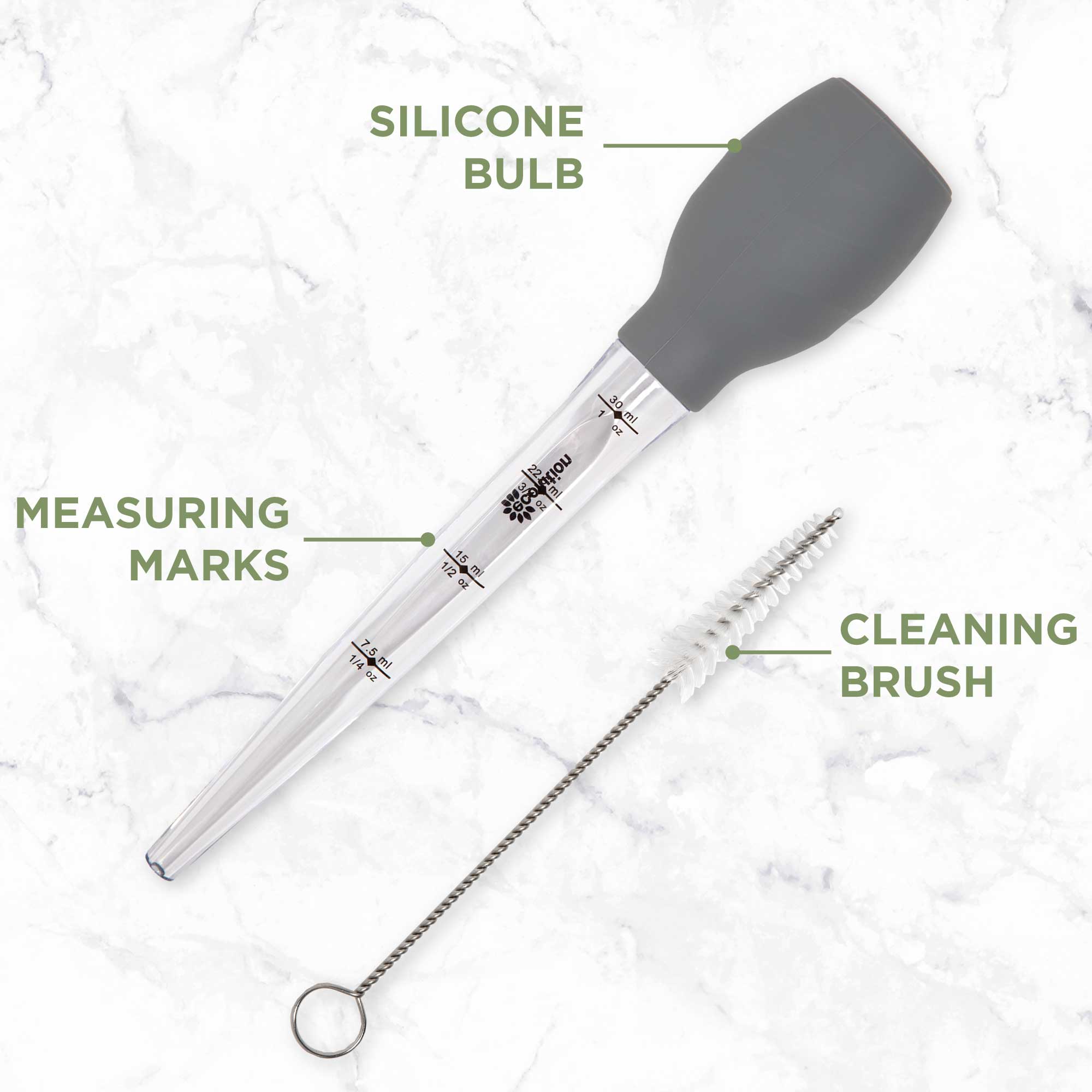 Effortless basting: silicone bulb baster allows smooth, even basting with easy-to-read measuring marks