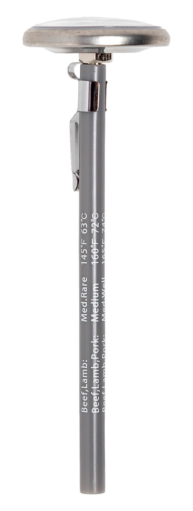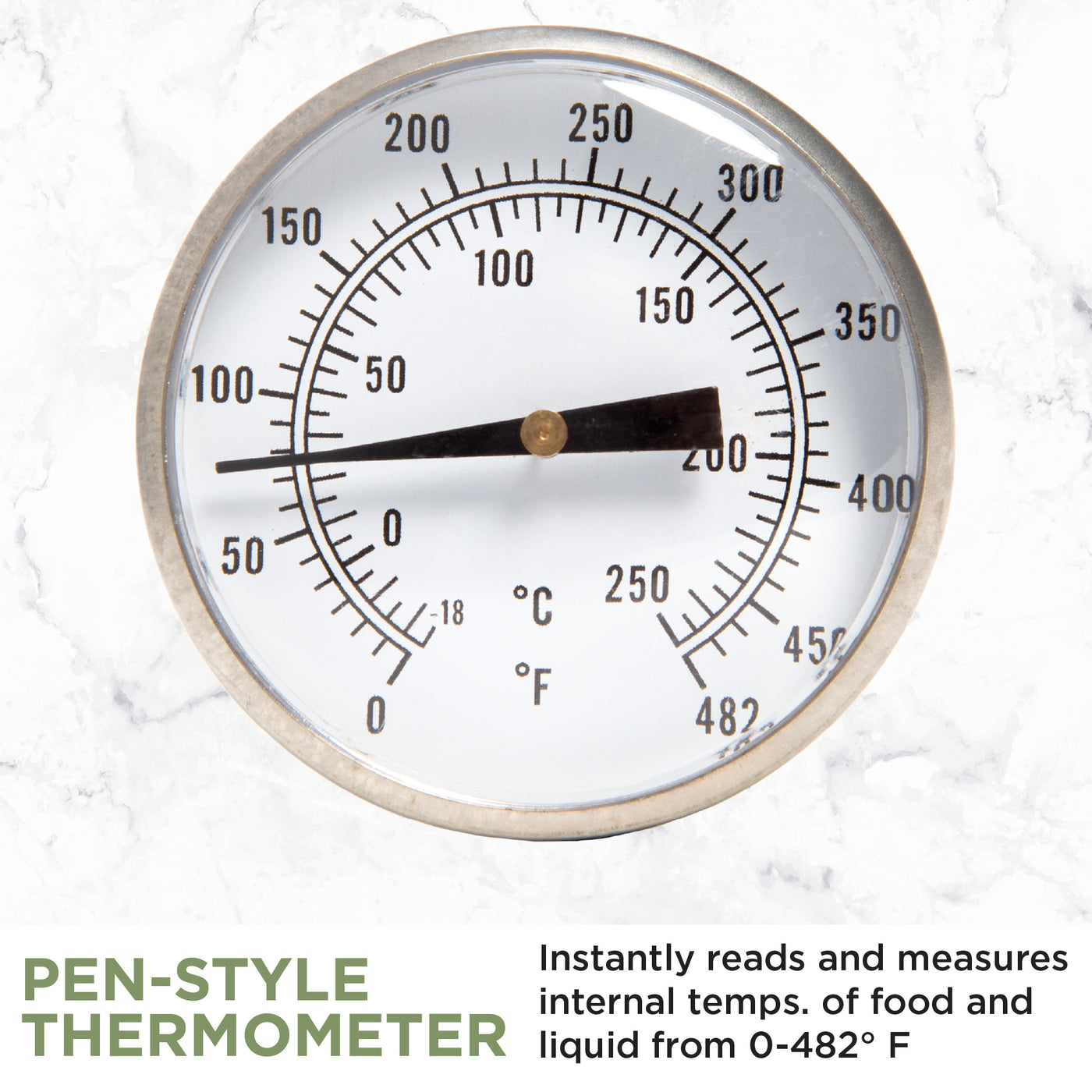 Easy temperature checks: thermometer measures internal temps from 0°F to 482°F (–18°C to 250°C) and includes both Fahrenheit and Celsius readings